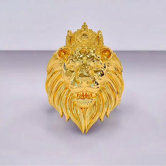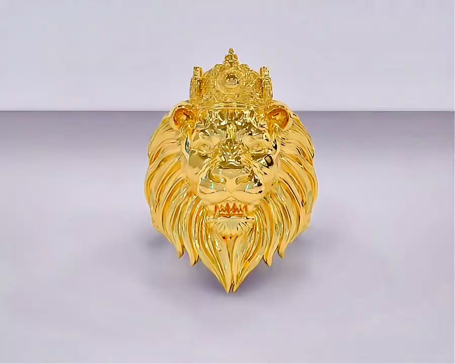This expertly crafted gold lion ring features a majestic lion crowned with intricate detailing, symbolizing strength and authority. Its refined design combines boldness with elegance, making it a distinguished accessory for those who appreciate regal craftsmanship and timeless style. Perfect for adding a statement of power and sophistication to any ensemble.