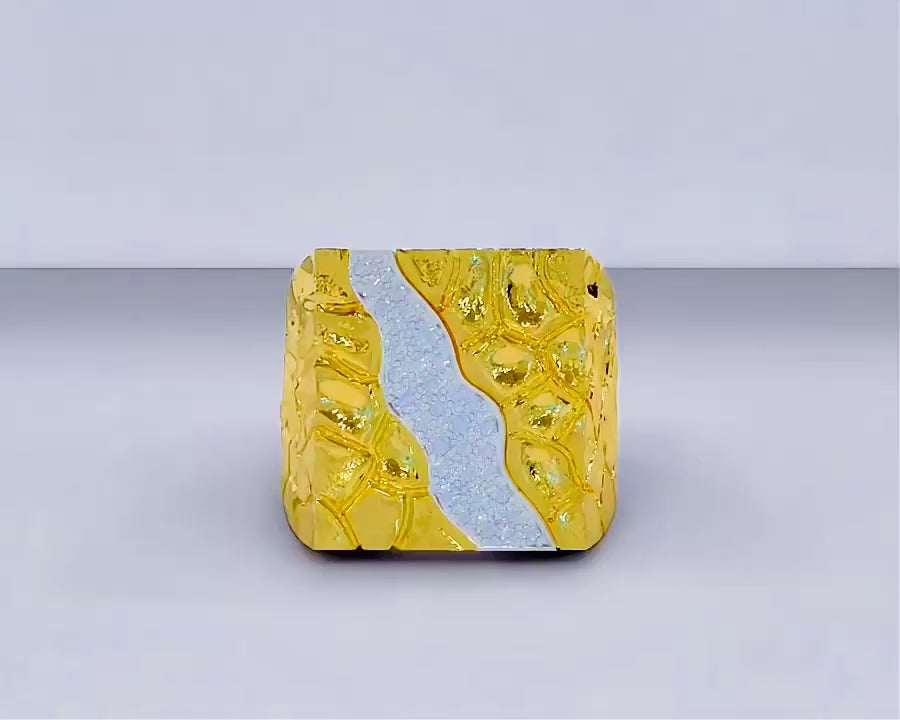 This Men's Cobblestone Design Diamond Ring combines rugged texture with refined elegance. Crafted with precision, its cobblestone pattern adds a distinctive, tactile appeal, while the carefully set diamonds enhance its sophisticated sparkle. Ideal for those seeking a bold yet timeless accessory, this ring offers durability and style that complements any wardrobe.